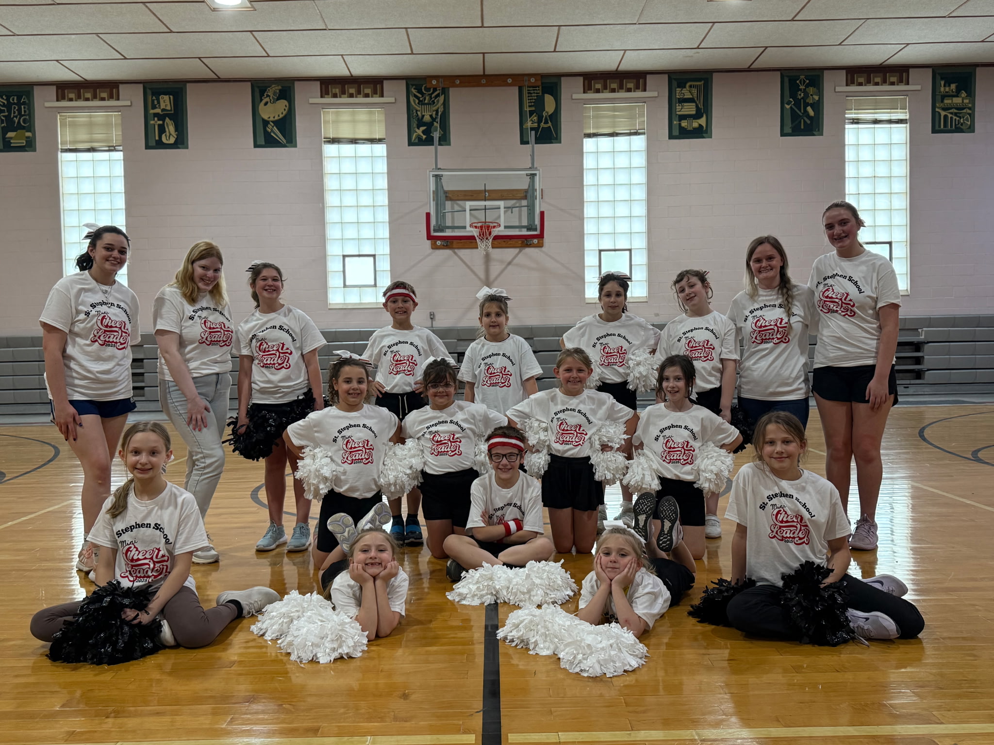 St. Stephen School loves to show their team spirit! Guest coaches, made up of parents and alumni help to teach cheers, dance and stunts to students Grades 1-8. Cheer camp typically takes place in the winter or spring.